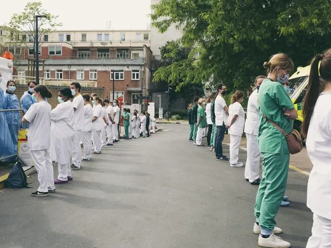 Infirmierii şi alţi membri ai personalului medical s-au aliniat la intrarea în spitalul Saint Pierre din Bruxelles când Sophie Wilmes a sosit sâmbătă şi i-au întors ostentativ spatele la apropierea maşinii oficiale.