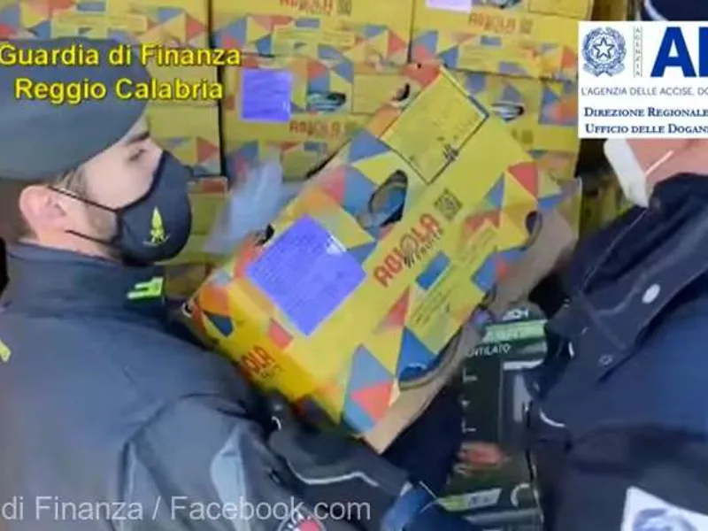 Aproape 2,3 tone de cocaină au fost descoperite vineri în containere cu care erau transportate banane, alune şi ardei din America de Sud în Italia, conform poliţiei financiare italiene.