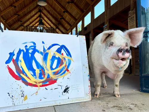 VIDEO Pigcasso, purcelușa care a vândut tablouri de 1 milion $, a decedat. Declarată artist non-uman