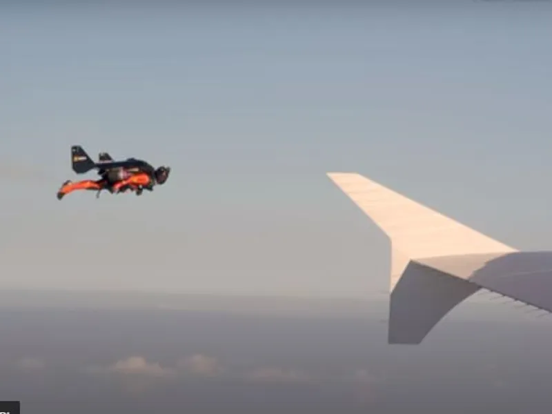 Jetpack-ul lui Yves "Jetman" Rossi - fost pilot al forțelor aeriene elvețiene - este cu siguranță capabil de o astfel de ispravă, dar zborurile sale au avut loc întotdeauna în circumstanțe foarte controlate și bine coordonate și în spațiu aerian sigur.