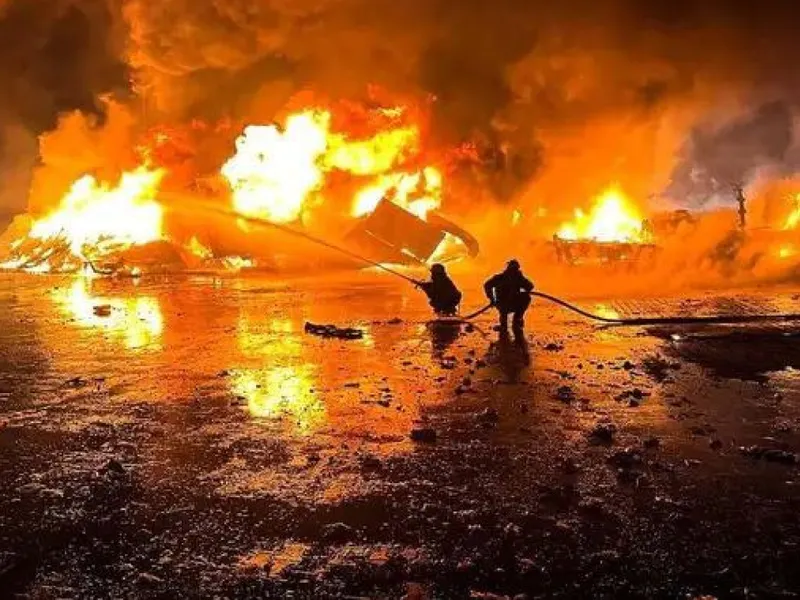 Rescuers extinguished the fire. There were no reports of fatalities or injuries.