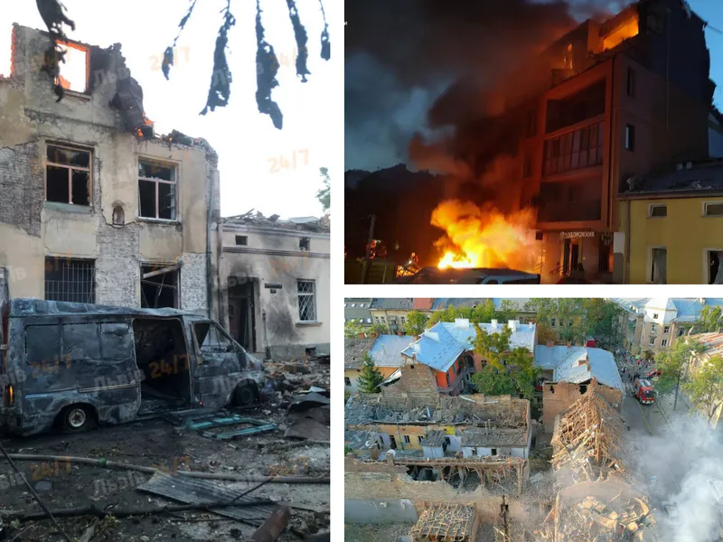 VIDEO „Plouă” cu rachete rusești în Lviv. 17 răniți, case în flăcări, 2 școli distruse