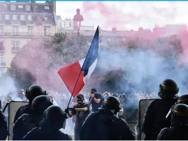 Însă, când manifestanții au ajuns în fața complexului Les Invalides din centrul Parisului, protestatari îmbrăcați în negru, care s-au atașat manifestației personalului medical, au dat foc la un vehicul și au aruncat cu tot felul de proiectile în poliție, scandând „Toată lumea urăște poliția”.