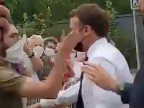 Incidentul a avut loc când Emmanuel Macron s-a apropiat de mulțiumea strânsă în spatele unui gard de protecție, pentru a da mâna cu oamenii. În acel moment, un bărbat din mulțime s-a repezit și l-a lovit pe peste față pe președintele Franței.