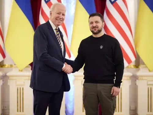 Președintele Ucrainei Volodimir Zelenski a postat pe Telegram o imagine cu el împreună cu președintele SUA, Joe Biden, la Kiev, alături de mesajul „Joseph Biden, bine ai venit la Kiev! Vizita dumneavoastră este un semn extrem de important de sprijin pentru toți ucrainenii.”