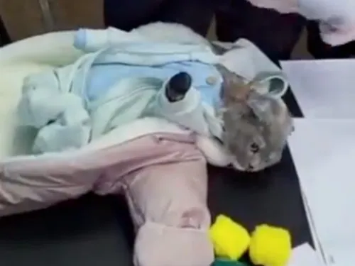 In the city of Nizhny Tagil, Russia, a woman who appeared to be holding a baby was suspected, and after investigations, it was found that what she was carrying was a cat disguised as a baby, and drugs were embedded in its clothes. pic.twitter.com/U4SinF7wQE