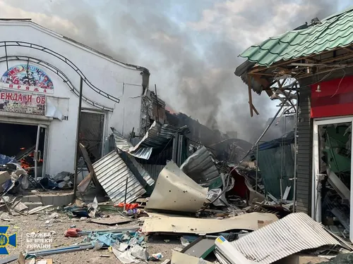 📹Numerous fires at a market in Sloviansk broke out after the shelling of the Russians. At least one person was killed. pic.twitter.com/5AmJZOmZn0