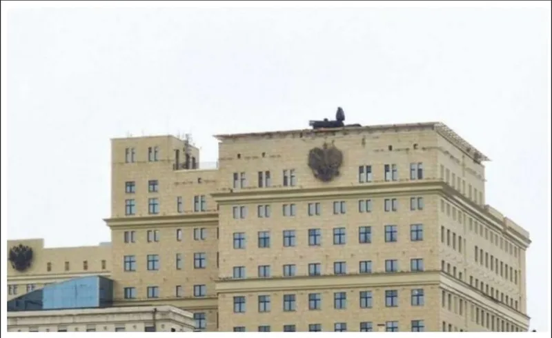 Canalele rusești Telegram au publicat fotografii ale clădirii Ministerului rus al Apărării de pe malul Frunzenskaia, unde a fost instalat un sistem Panțîr-S1.