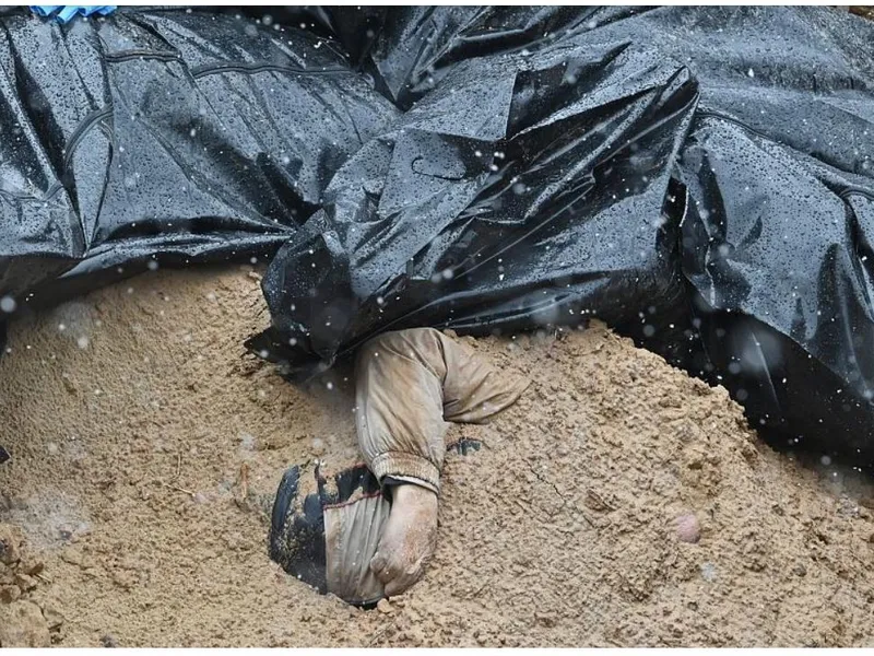 „Aș spune că Rusia a declanșat unilateral cel mai brutal război, că acum se stabilește că crimele de război au fost comise de armata rusă și că este necesar să fie găsiți responsabilii, care trebuie deferiți justiției”, a spus Macron.