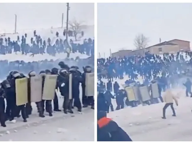 În înregistrări video postate pe reţelele sociale, pot fi văzute mai multe sute de persoane, îmbrăcate cu haine groase, aruncând cu bulgări de zăpadă în poliţişti echipaţi cu scuturi anti-revoltă, la Baimak, oraş cu circa 17.000 de locuitori.