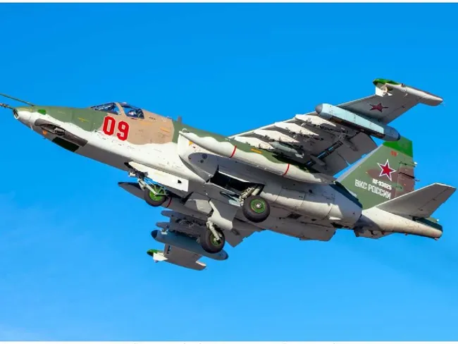Un avion de atac Su-25 cu un singur loc din era sovietică este proiectat să ofere sprijin aerian în zona de luptă zi și noapte în condițiile vizibilității țintei.