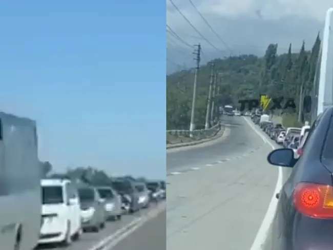Also a long line of cars is visible on the published footage. According to media reports, local residents and tourists are leaving the area en masse. pic.twitter.com/YOeUUBnoTu