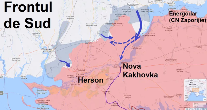 Pe Frontul de Sud, o spargere a liniilor de apărare ruse dinspre Krivoi Rog spre Nova Kakhovka s-a produs duminică după-amiază, dar amploarea înaintării ucrainene este încă neconfirmată.