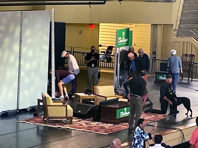 Un reporter Associated Press aflat la fața locului a văzut un bărbat care a luat cu asalt scena și a început să-l lovească sau să-l înjunghie pe Rushdie, trântindu-l la podea, înainte de a fi reținut rapid.