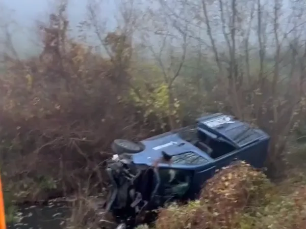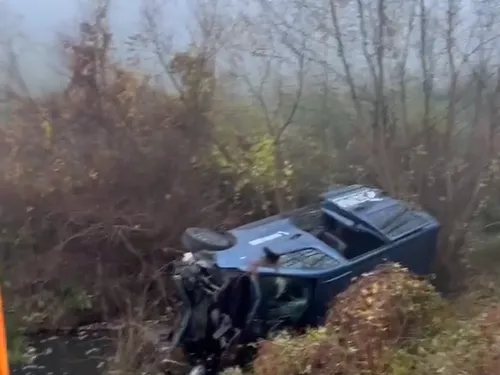 VIDEO Șapte răniți, după ce un microbuz s-a răsturnat într-o râpă de lângă Sibiu. Șoferul era beat