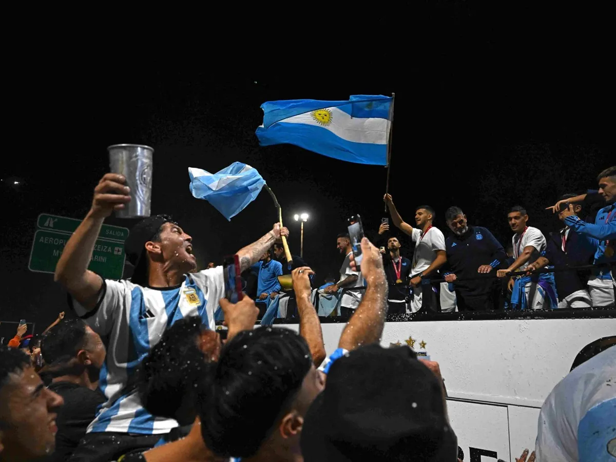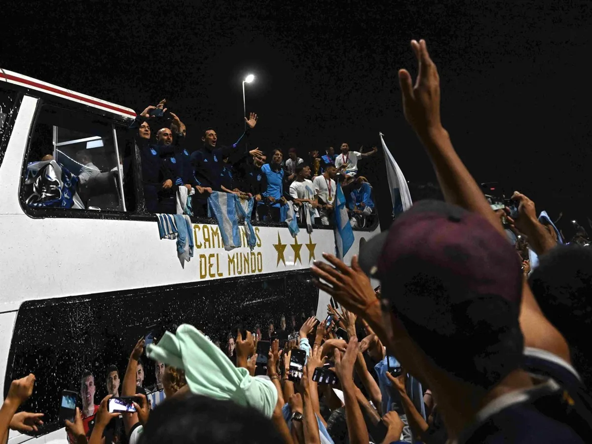 În momentul în care autocarul echipei a plecat de la aeroport, acesta a fost imediat asaltat de suporteri entuziaști îmbrăcați în culorile naționale albastru și alb. Videoclipurile arată cum autocarul înaintează încet în spatele unei escorte de poliție, înconjurat de zeci de mii de oameni care flutură steagul argentinian și lansează petarde în noapte.