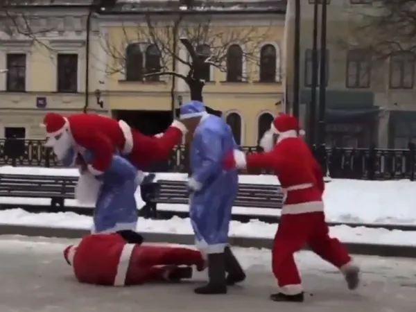 Șase bărbați îmbrăcați în „Moș Crăciun” s-au luat la bătaie pe o stradă din Rusia. În altercație a fost implicat și un bărbat care făcea curățenie pe stradă. Un grup de ruși îmbrăcați în Moș Crăciun s-au luat la bătaie.