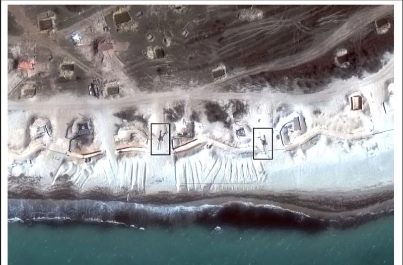 Fotografiile publicate surprind noi fortificații ce au apărut pe ambele părți ale autostrăzii E-105 și lângă Lacul Sivaș.