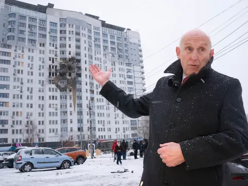 Arătând spre o clădire din Kiev, avariată de drone ale Rusiei, Healey a spus că aceasta „îți spune tot ce trebuie să știi despre președintele Putin și hotărârea sa nu doar de a purta un război împotriva Ucrainei, ci de a viza civili, orașe, infrastructura de care oamenii depind în mod absolut critic în mijlocul iernii”. [N.B. Ukrainska Pravda nu îl recunoaște pe Putin ca președinte – ed.]