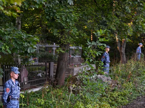 Membrii Gărzii Naționale Ruse - gardă devenită „armata lui Putin” după ce s-a evidențiat în stoparea mercenarilor care mărșăluiau spre Kremlin - au fost staționați de-a lungul gardului de la cimitire, îndepărtând vizitatorii.