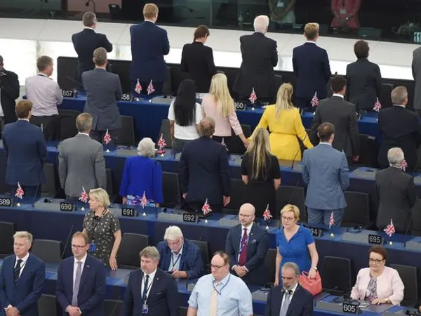 Deputații din partidul lui Nigel Farage s-au întors cu spatele în timpul intonării imnului UE, în timpul ceremoniei de deschidere a sesiunii noului Parlament European, la Strasbourg.