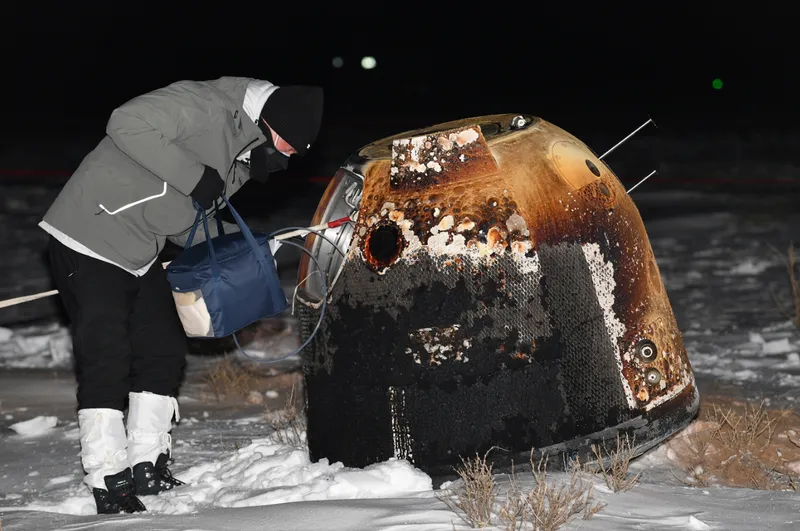 De aici, personalul misiunii a recuperat modulul care va fi transportat pe calea aerului la Beijing unde vor fi extrase eşantioanele selenare. Probele vor fi trimise la un laborator din capitală, unde oamenii de ştiinţă îşi propun să obţină informaţii despre vârsta şi istoria solului selenar.