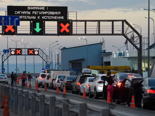 Aproximativ 1.000 de mașini așteaptă să traverseze, atât din partea Crimeii ocupate, cât și din partea Rusiei.