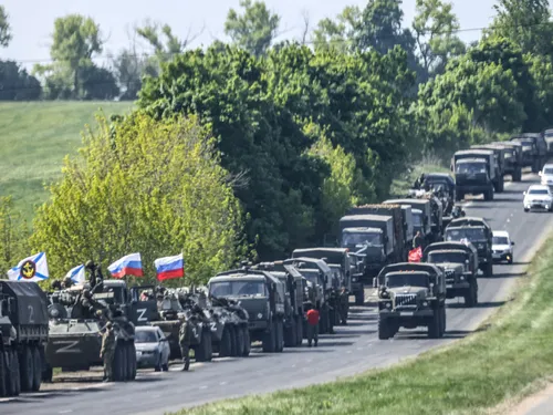 Putin comasează din nou forțe pentru un nou atac asupra Ucrainei. Au fost observate convoaie lungi de echipament militar, spun serviciile secrete britanice.