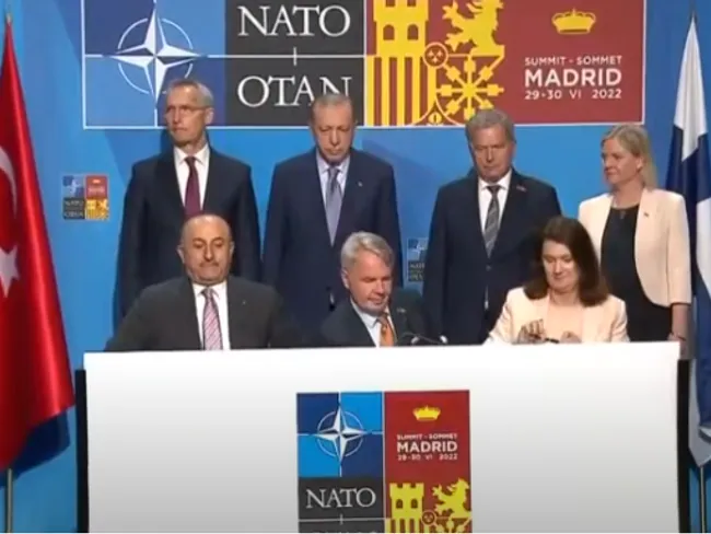 Turcia a fost de acord cu intrarea în NATO a celor două ţări nordice după mai bine de trei ore de discuţii marţi la Madrid, în marja summit-ului."Turcia a obţinut ceea ce a vrut", a spus preşedinţia turcă în declaraţia sa. Acordul a fost semnat marţi seara în faţa camerelor de filmat de şefii diplomaţiilor din cele trei ţări.