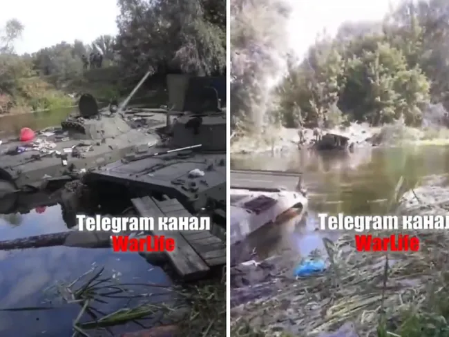 Blindatele de infanterie ale rușilor nu au fost capabile să treacă un râu mic din Donețk.