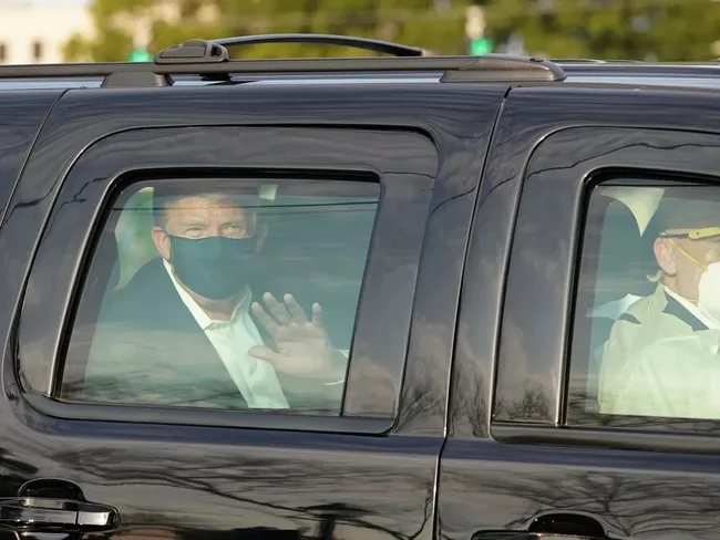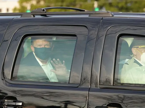 Liderul de la Casa Albă, îngrijit la spitalul militar Walter Reed din Bethesda, în apropiere de Washington, purta mască şi a fost filmat într-un SUV negru, în care se mai aflau cel puţin alte două persoane. Preşedintele şi-a salutat din maşină susţinătorii şi s-a întors la spital, scrie agenția France Presse, citată de Agerpres.