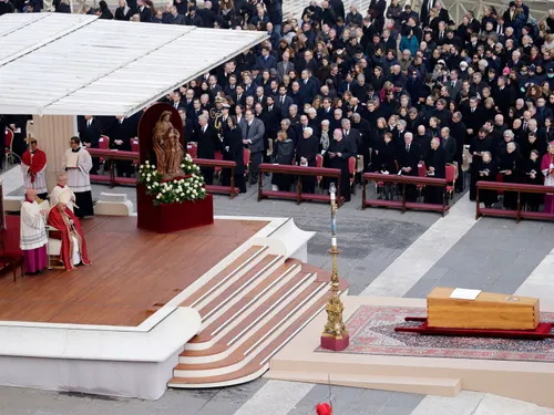 Mulţimi de oameni au început să sosească în piaţa de la Vatican încă de la ora locală 4:00 (3:00 GMT), cu cinci ore şi jumătate înainte de ceremonia de înmormântare care va fi oficiată de succesorul său, papa Francisc.