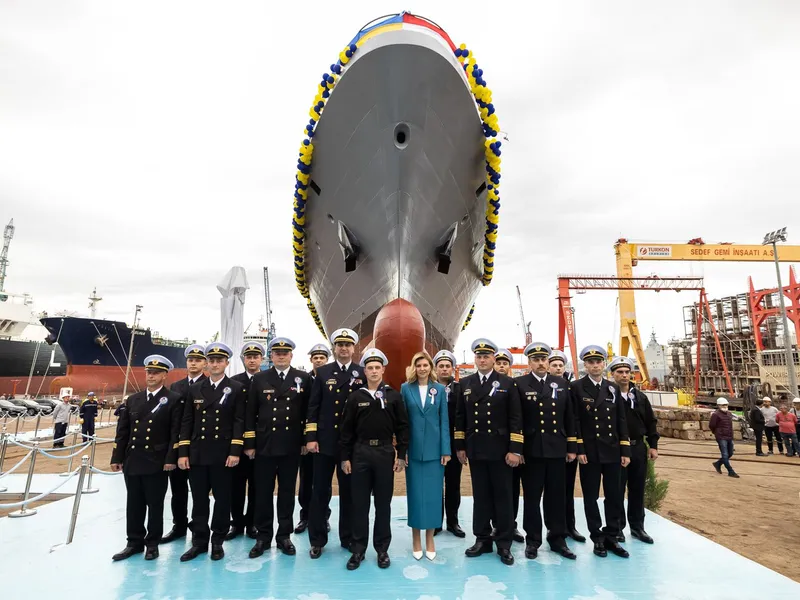 "Am avut onoarea de a lansa corveta "Hetman Ivan Mazepa". Numele său a fost ales în 2021 de către președintele Volodimir Zelensky. Construită în Turcia, va servi Ucraina și va fi prima navă de acest tip din marina noastră. Dorind vânt bun, succes și numai victorii!", spune soția președintelui ucrainean.