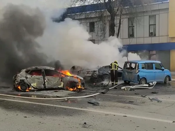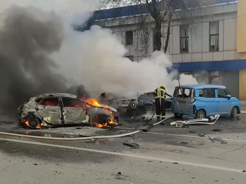 Imagini postate de agenţia de stat RIA au arătat cel puţin trei maşini în flăcări, iar alte imagini postate online arătau fum negru care se ridica din oraş.