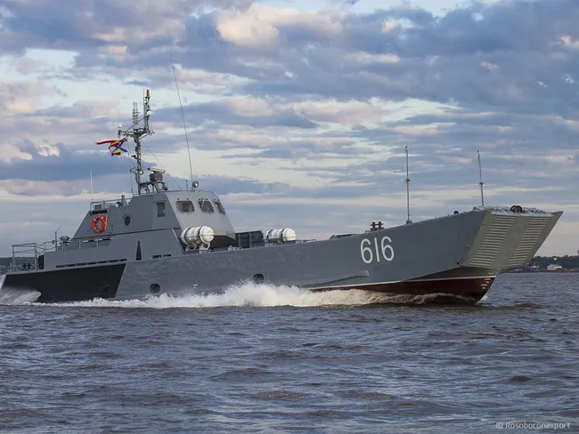 Ținta este o navă rapidă de debarcare Project 11770E Serna, de circa 25 de metri lungime ce poate transporta 45 de tone.