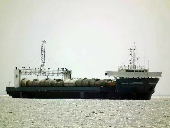 Racheta a lovit feribotul rusesc Conro Trader încărcat cu vagoane-cisterne pline cu combustibil în portul Kavkaz.