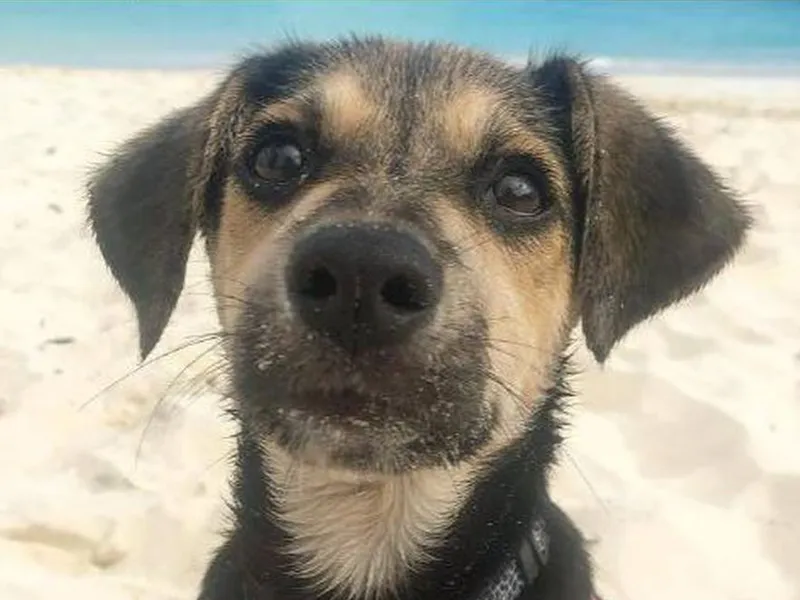 Câinele „Rufus” este un Potcake din Bahamas și aparține unui îngrijitor de pe insula privată.