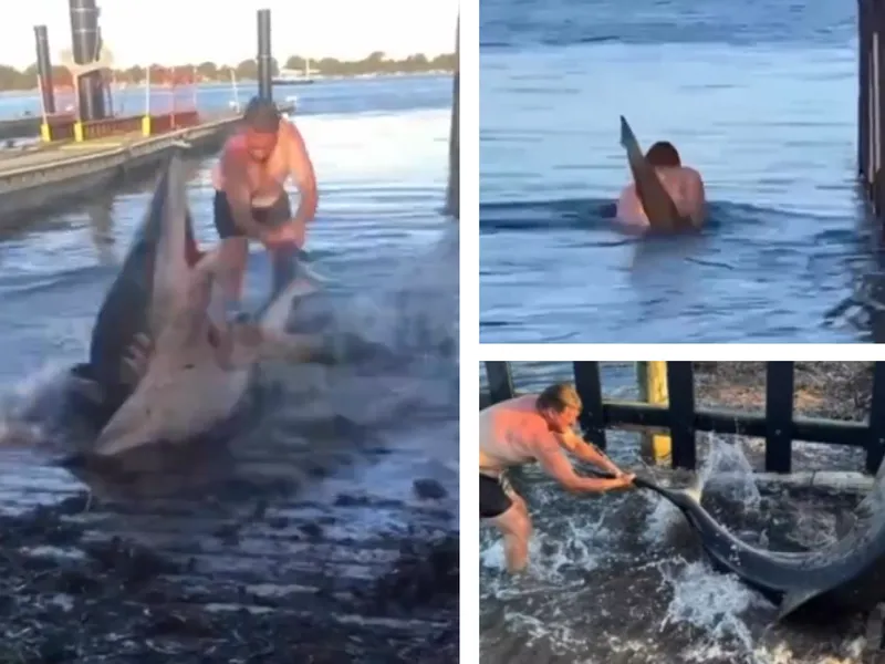Tristan Turner, un bărbat din Australia și-a șocat familia după ce a decis să salveze viața unui rechin uriaș de aproximativ 4 metri lungime, prins în cârligul undiței lansate de fiul său.