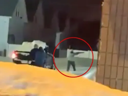 "Sunt pe cale să împuște pe cineva. Încearcă să împuște pe cineva", spune un bărbat în înregistrare, chiar înainte ca un alt tip, îmbrăcat într-un hanorac gri și o pălărie, să poată fi văzut sprijinindu-și picioarele într-un banc de zăpadă puțin adânc și îndreptându-și arma.