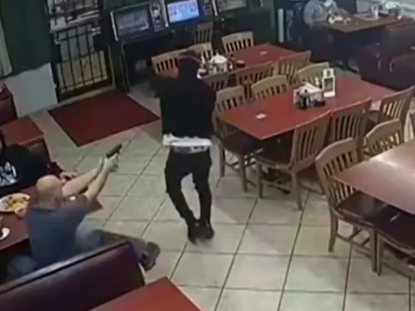 VIDEO Un bărbat îl împușcă mortal pe un hoț mascat și returnează banii celorlalți clienți