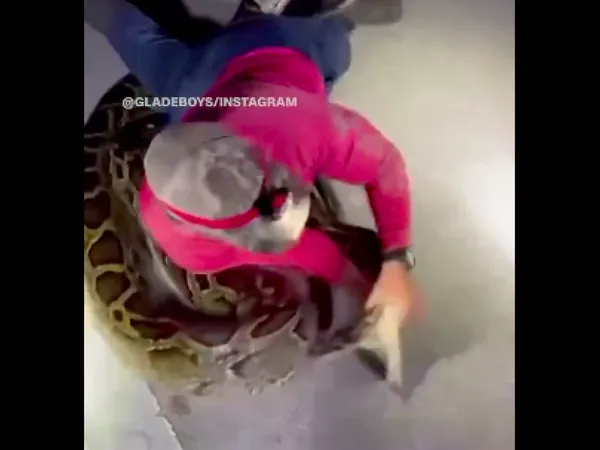 Un bărbat s-a luptat cu mâinile goale cu un șarpe uriaș, cel mai mare exemplar de piton birmanez descoperit vreodată. Bărbatul a fost imediat încolăcit de bestia cu sânge rece.