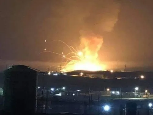 Imagini postate pe reţelele de socializare arătau o minge de foc uriaşă, însoţită de zgomotul mai multor explozii.