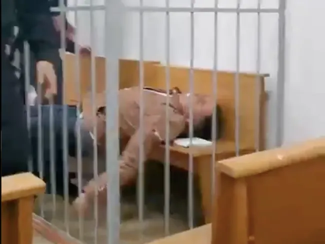 VIDEO Un opozant belarus, Stepan Latypov, se înjunghie în gât, în cuşca acuzaţilor la proces