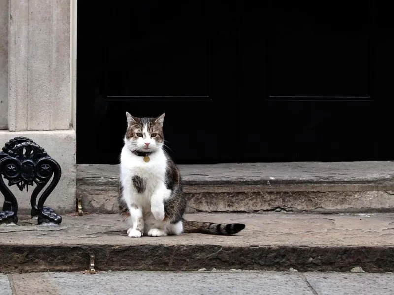 Ușa clădirii unde locuiește premierul britanic nu poate fi deschisă din afară, deoarece nu are mâner, notează presa engleză. În schimb, un membru al personalului a trebuit să vină și să-l deschidă din interior, permițându-i lui Larry să se întoarcă la căldură.