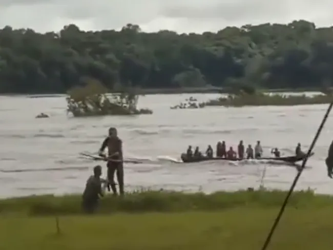 Con arcos, flechas y lanzas, indigenas intentan tomar por asalto un puesto de control militar de la FANB en el río Orinoco, en "Santa Bárbara" municipio San Fernando de Atabapo en el Estado Amazonas. Los militares dispararon al aire para disuadirlos. Se desconoce el motivo. pic.twitter.com/ogjZF0dMcx