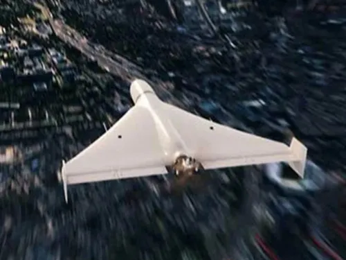 Racheta interceptează drona și o detonare este clar vizibilă.