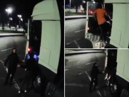 Un șofer român de TIR a trecut prin clipe de spaimă, după ce hoții au deschis ușa cabinei și au intrat peste el. Bărbatul s-a trezit și i-a pus pe fugă pe tâlhari, însă situația este una din ce în ce mai des întâlnită, scriu românii în comentariile clipului.