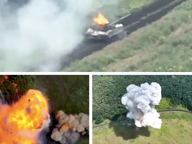 VIDEO Un tanc rusesc aflat în mișcare a primit o lovitură devastatoare.A explodat ca o bombă atomică