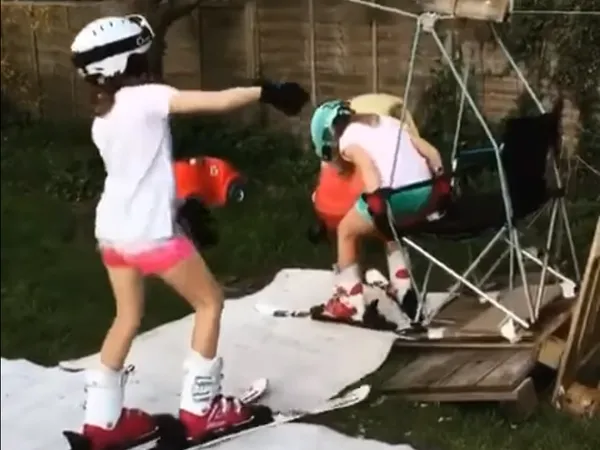 VIDEO Un tată a adus muntele, în izolare, pentru ca fetele lui să poată schia