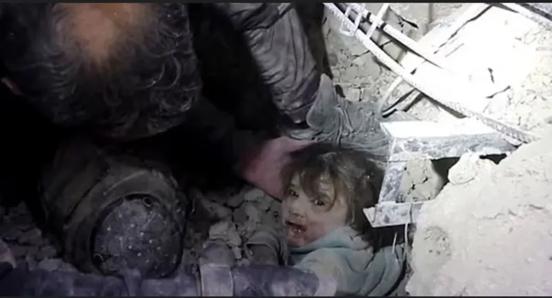 VIDEO Un tată își scoate fiica dintre dărâmături în Alep, Siria. „Nu-ți fie teamă, fata tatii”